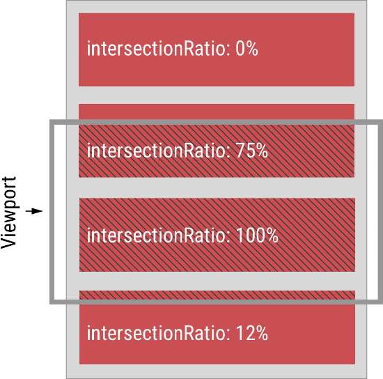上图中,灰色的水平方框代表视口, 深红色的区域代表四个被观察的元素,