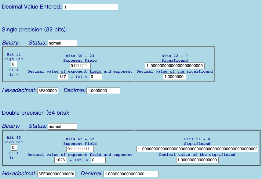 - 32位浮点数, 1 位符号位 + 8 位指数(带偏移量) + 23 位的尾数